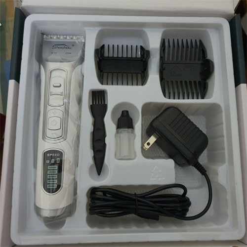– Fullbox: sản phẩm gồm có dây xạc điện, 2 cữ, dầu tra lưỡi đơ, chổi nhỏ vệ sinh máy tiện lợi. Sách hướng dẫn hãng Shoushow mã S10
