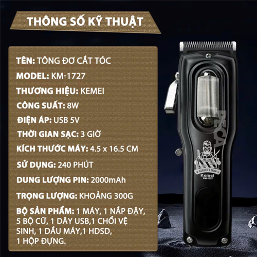 THÔNG SỐ KỸ THUẬT TÊN: TÔNG ĐƠ CẮT TÓC MẪU: KM-1727