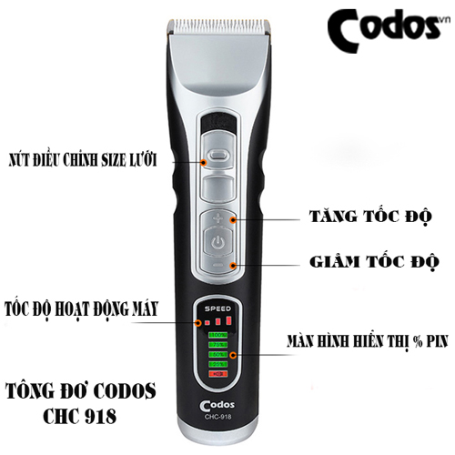 Tông đơ Codos CHC-918 chuyên nghiệp chuyên dùng cho salon, Lá hớt tóc, Đường nhỏ nhẹ dễ sử dụng nhưng động cơ vô cùng khỏe mạnh, phong cách sắc bén bén sử dụng lâu không bị nóng máy, tuổi thọ pin cực tốt có can use link to 4h.